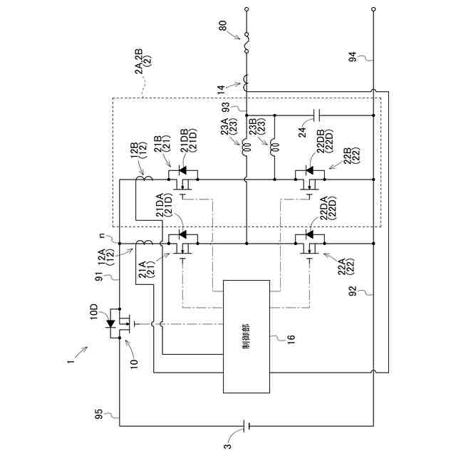 従来、直流電源から出力される直流電圧の電圧値を変換する場合に、電源装置が利用されている。このような電源装置として、例えば下記に出典を示す特許文献1に記載のものがある。