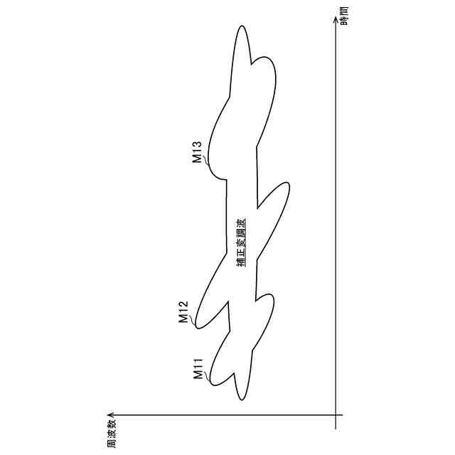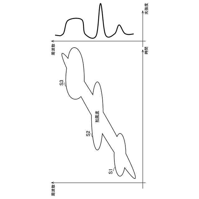 光通信波長帯域の変調波の位相を補正することにより、周波数と時間軸で表される平面空間において前記読み出し波の傾きと逆の傾きで周波数が時間に応じて変化する補正変調波を生成する位相補正部と、