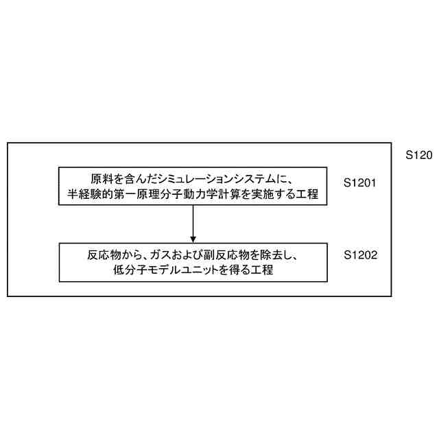 (3)前記低分子モデルユニットの少なくとも一つについて、化学反応を扱える分子動力学計算を実施する工程