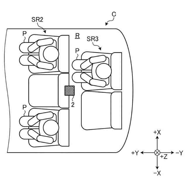 図1は、実施形態にかかる検知システム1が搭載される車両Cの車室R内の構成の一例を示す透視側面図である。図2は、実施形態にかかる検知システム1が搭載される車両Cの車室R内後部の構成の一例を示す透視上面図である。