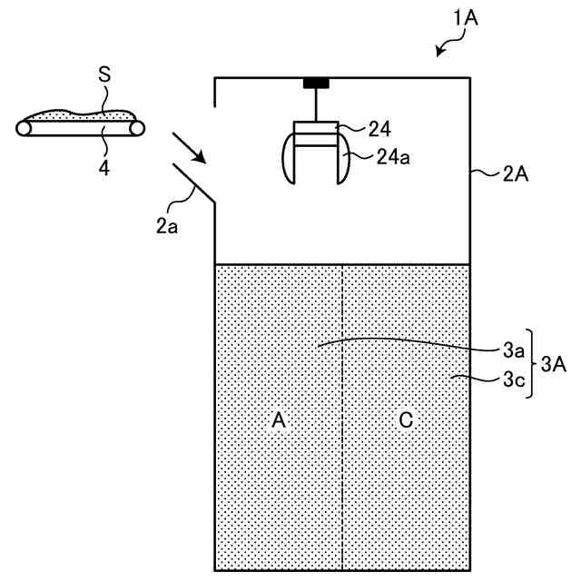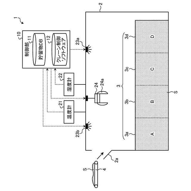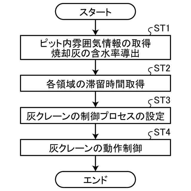 【解決手段】廃棄物が焼却されて得られた焼却灰を貯留可能に構成された焼却灰貯留手段と、焼却灰を移動可能に構成された把持手段と、把持手段の動作を制御するとともに把持手段の動作を記憶する制御手段と、を備え、制御手段は、焼却灰貯留手段に貯留された焼却灰が焼却灰貯留手段に搬入された時点から経過した滞留時間が、所定の滞留時間になるように把持手段を制御する。