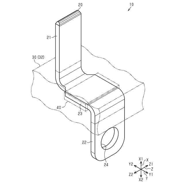前記第1端子部と前記第2端子部とを連結するとともに前記第1軸線と交差する第2軸線に沿って延びる連結部と、を有し、