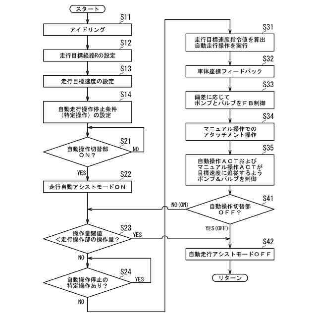 図1に示す操作アシスト制御システム1の作動のフローチャートである。