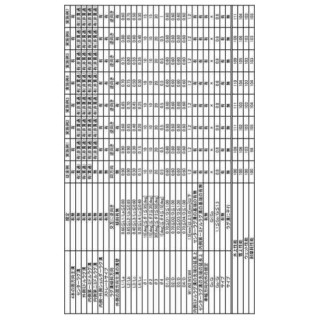 図7は、実施形態に係る空気入りタイヤの性能試験の結果を示す図表である。