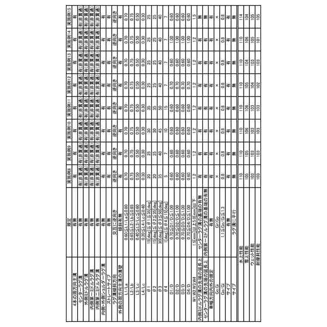 図5は、実施形態に係る空気入りタイヤの性能試験の結果を示す図表である。