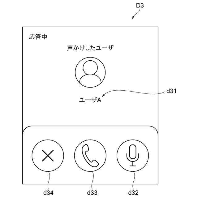 声かけ音声に応答するためのユーザインターフェースが表示されたユーザの端末(第2の端末)の画面例を示す図である。