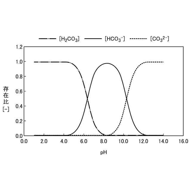 水に炭酸イオンが溶解している場合における、炭酸(H