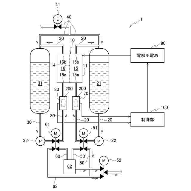 前記制御部からの制御により、前記電解槽の前記陽極及び前記陰極に前記電圧を印加する電解用電源と、