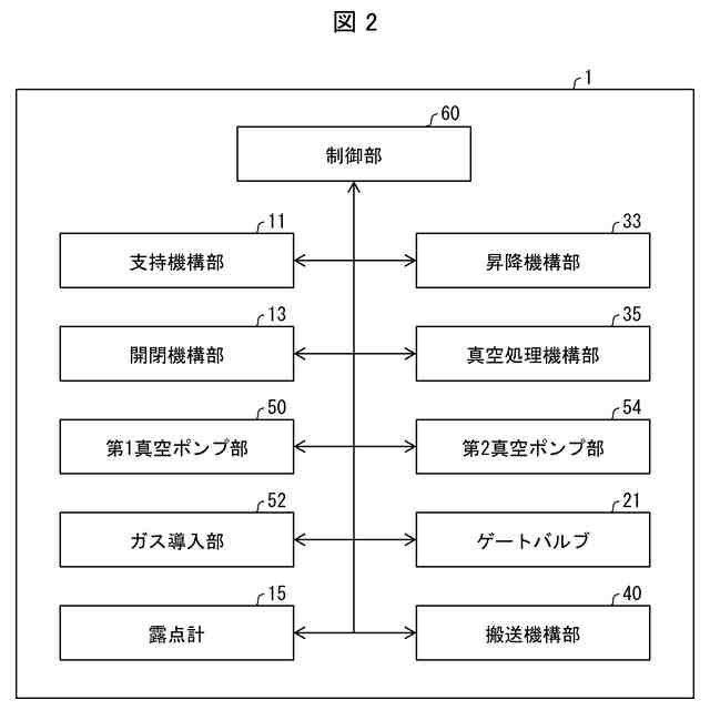 図1は、本開示の実施形態1に係るベッセル90が適用される真空処理装置1の要部構成を説明する図である。図1にはベッセル90も表されており、ベッセル90が真空処理装置1内に導入されている場面の一例が示されている。図2は、真空処理装置1の機能構成を示すブロック図である。