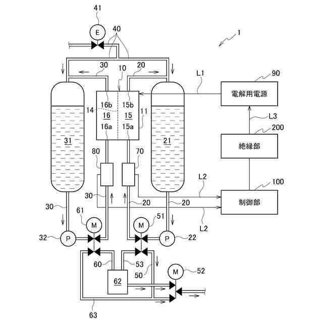前記制御部からの制御により、前記電解槽の前記陽極及び前記陰極に前記電圧を印加する電解用電源と、