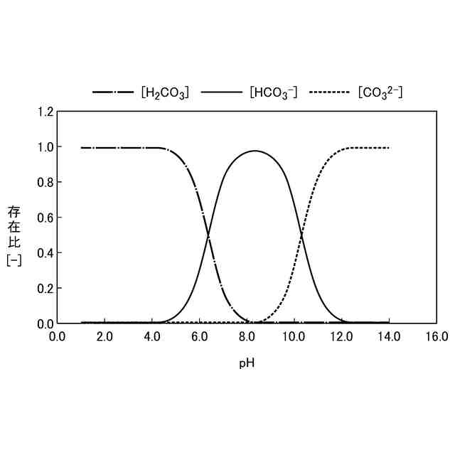 水に炭酸イオンが溶解している場合における、炭酸(H