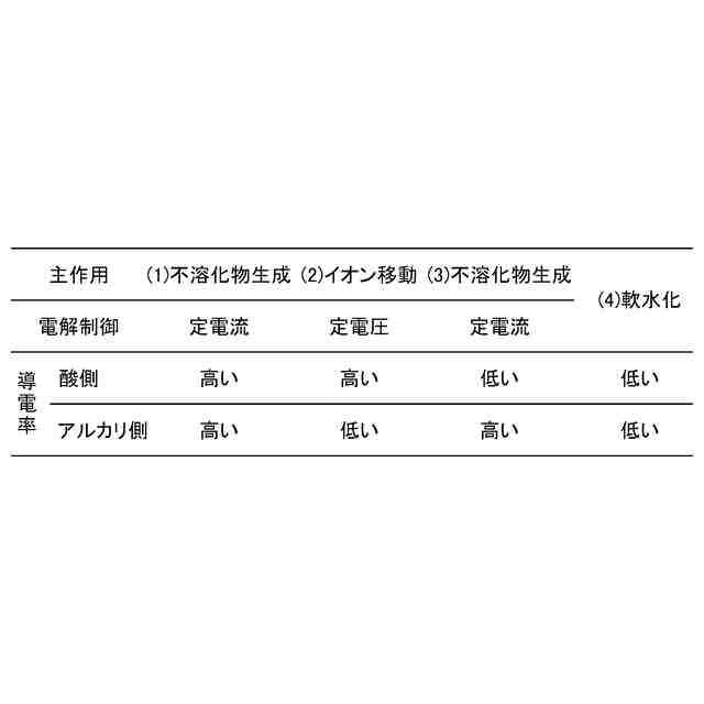 本実施形態に係る水処理装置における電解制御を説明するための表である。