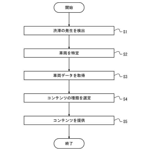道路における渋滞の発生を検出し、検出された渋滞を構成する複数の車両を特定し、特定された車両から車両別に得られるドライバーの運転記録を示す車両データに基づいて、配信するコンテンツの種類を車両ごとに選定し、選定されたコンテンツを対象の車両に提供する制御部を備える。