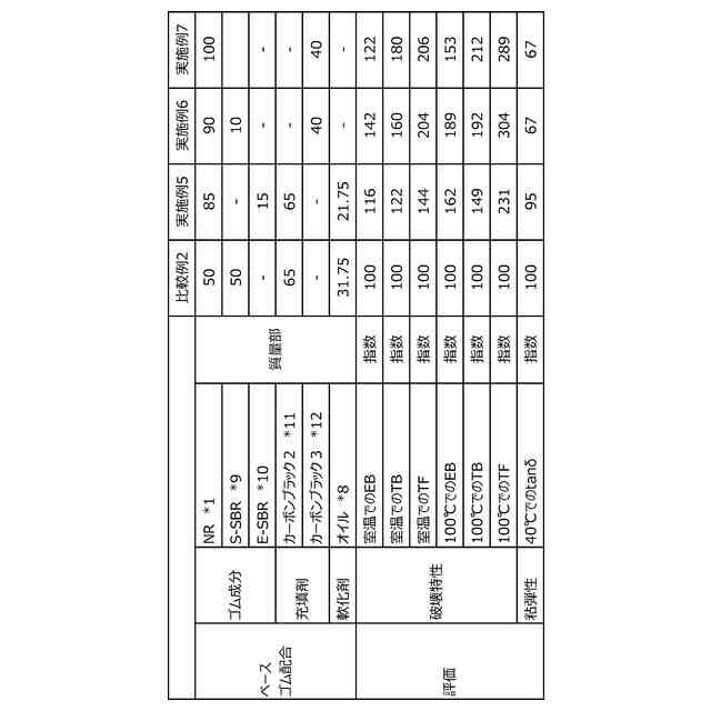 前記ベースゴム中のゴム成分は、当該ゴム成分100質量部中、前記スチレン-ブタジエンゴムを5~50質量部含む、請求項5に記載のタイヤ。