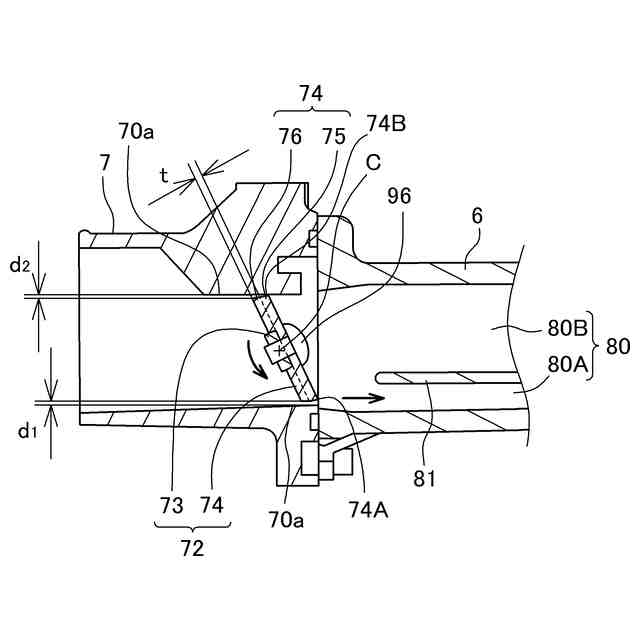 前記弁体(274)は、前記弁軸(73)の軸中心(C)に対して、上流側にオフセットした弁体本体部(275)と、前記弁体本体部(275)に厚みを持たせたマージン部(276)を有し、
