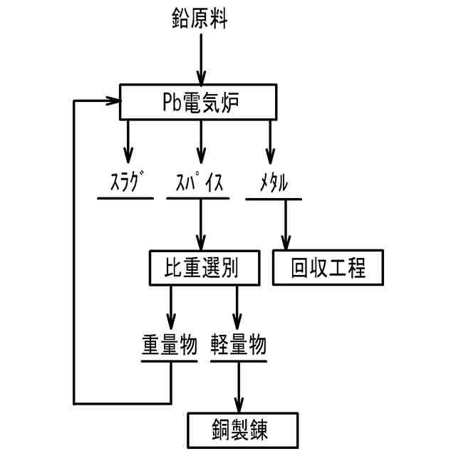 【解決手段】 鉛の回収方法は、鉛原料を溶融する溶融工程と、前記溶融工程で得られたスパイスを、凝固後に破砕する破砕工程と、前記破砕工程で得られた破砕物を軽量物と重量物とに分離する分離工程と、前記重量物を前記溶融工程に繰り返す工程と、を含む。