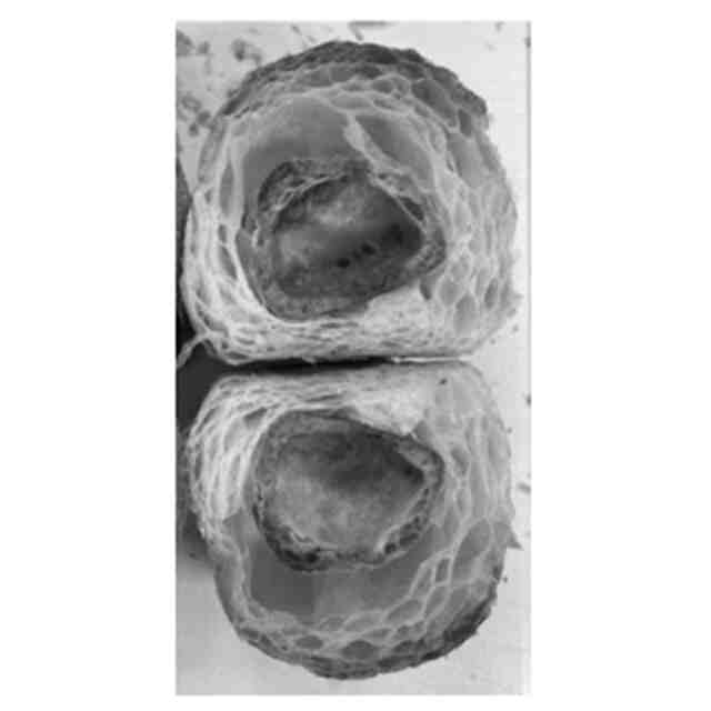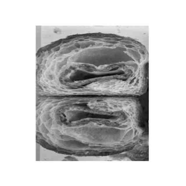 図2は、試験例1-1の、水分含量が10質量%の焼成済みシューケースを用いたベーカリー食品を中央部分で2つに切断した際の、それぞれの断面を示した図である。