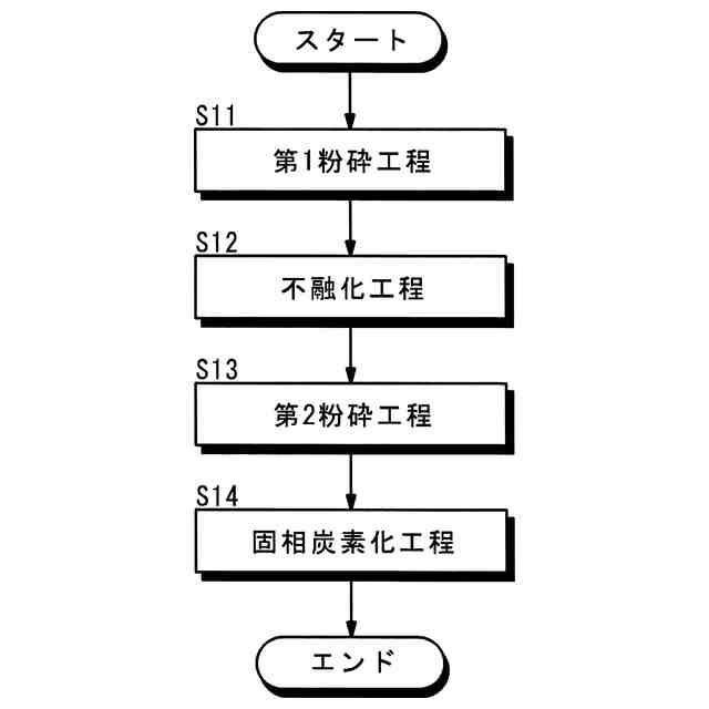 上記第1粉砕工程で粉砕された上記易黒鉛化性炭素原料を不融化する工程と、