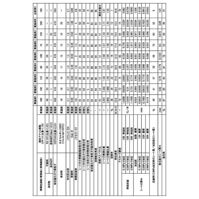 である熱伝導シートを製造したことが開示されている。さらに、特許文献3では、発泡体シートと、粘着材とを備える電子機器用熱伝導性シートであって、発泡体シートの主成分を構成する樹脂を架橋させてなり、50%圧縮強度が1000kPa以下、且つ、50%圧縮時の熱抵抗が5.0℃/W以下である、シートが開示されている。