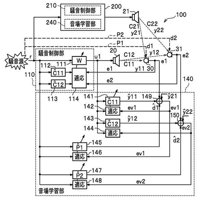 本発明によれば、複数の制御点(マイク)の騒音を低減することで、安定して広範囲の騒音を低減することができる。