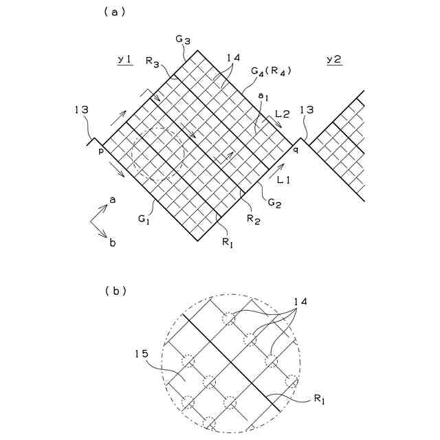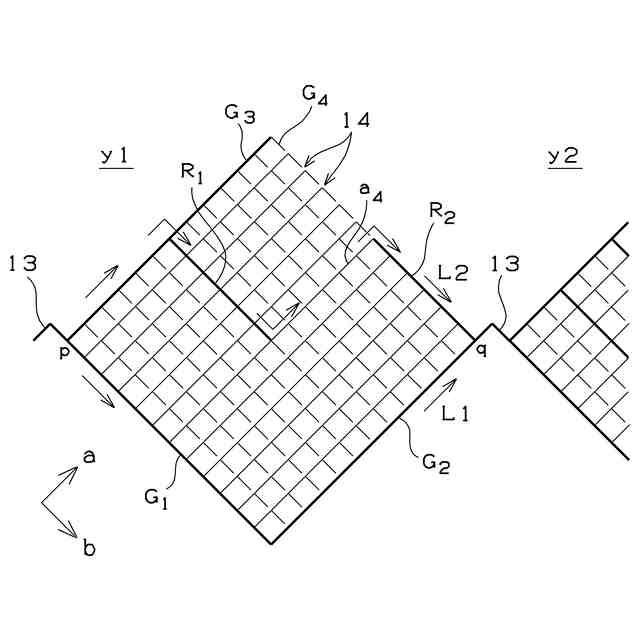 上記X軸格子および上記Y軸格子における上記導通経路として、外郭の一部を構成する2辺の枠線からなる経路と、内部に位置する上記微細格子の格子辺で構成される内部配線を経由する経路とが形成されることを特徴とする。