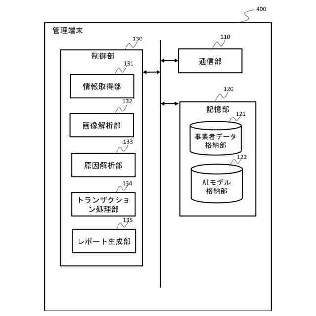 温室効果ガス排出量管理システムを構成する事業者端末の機能ブロック図である。