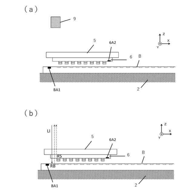 TFT基板上に多数のマイクロLEDを実装するマイクロLEDディスプレイのように、基板上に多数のチップ部品を実装する用途がある。そのような用途において、図5に示す基板B上に多数ある実装箇所PC夫々にチップ部品を位置合わせして実装する必要がある。