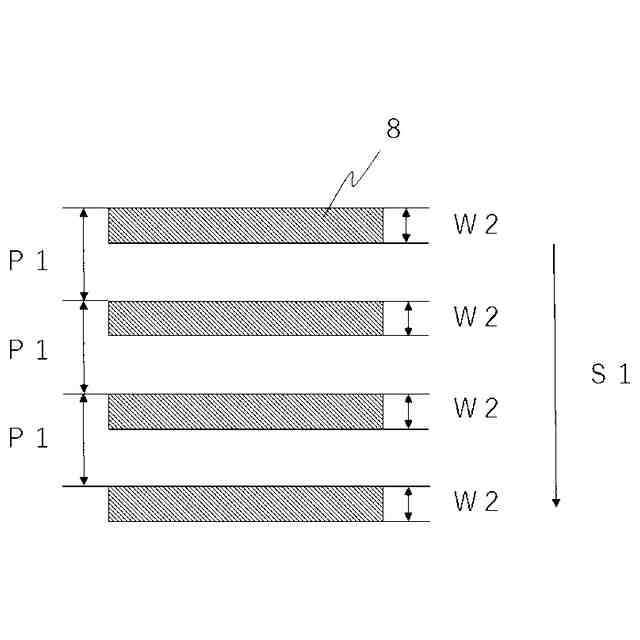 前記第1の要素の少なくとも一部は、前記第1の方向の幅が前記第2の要素が配置された間隔よりも広いことを特徴とする請求項1に記載の潜像画像形成体。