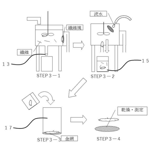 ふるい分け残量の測定にあっては、繊維が金属網や、撹拌棒に絡まる事象が発生しており、測定毎にふるい分け槽の内や金属網部に繊維の残りがないかの確認作業が必要となる。この作業は、作業員にとって手間と時間を要するため作業性が悪く、また、測定誤差の要因となる。