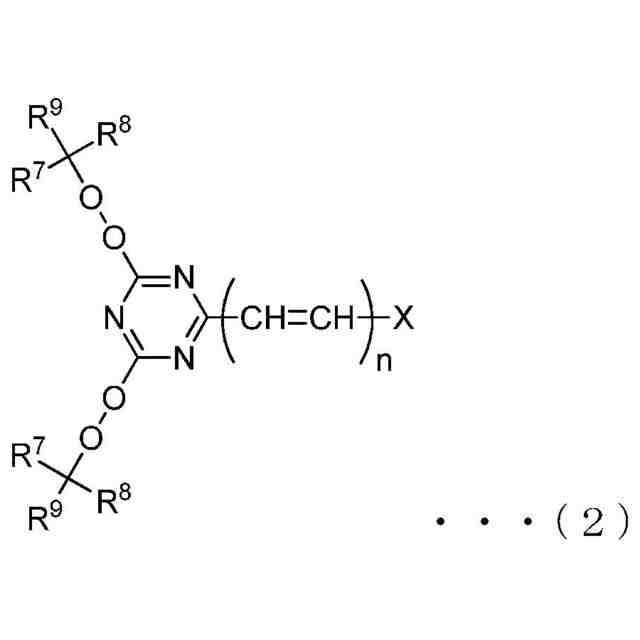 で表されるアリール基である。nは0から2の整数を表す。)で表される過酸化結合を有するトリアジン誘導体。