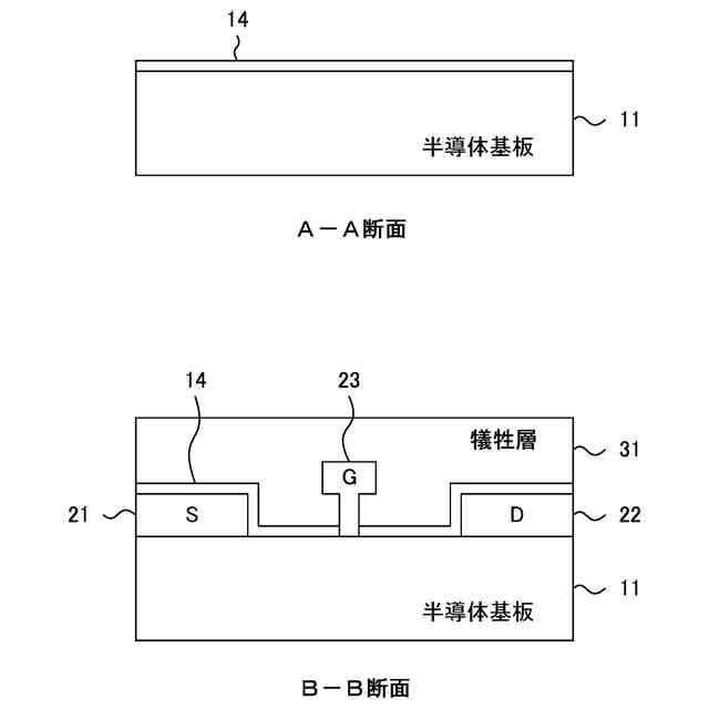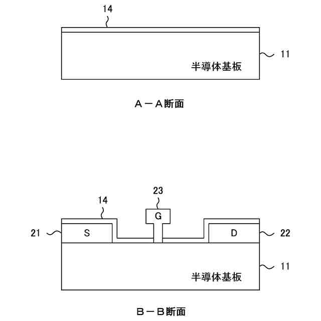 前記半導体基板の上面において前記ソース電極と前記ドレイン電極との間の領域に形成されるゲート電極をさらに備え、