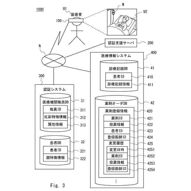 装着中における装着者の虹彩画像、撮影した患者の認証情報、及び、撮影した薬剤の薬剤情報を前記認証支援装置へ送信し、