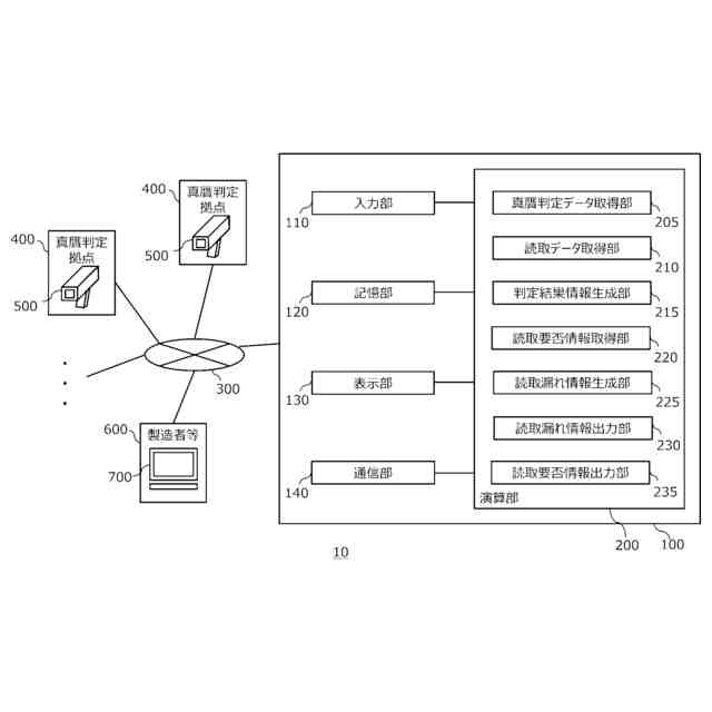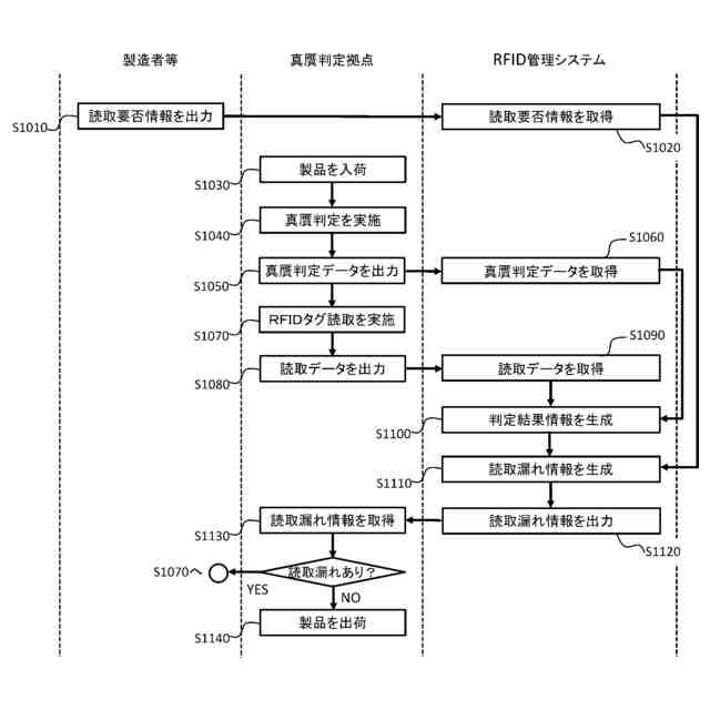 読取漏れ情報生成部は、RFIDタグの読み取りが必要な製品のうち、真贋判定データに関連付けられた読取データが存在しないか、又は、読取データが正常に取得されなかった製品に対し、読取漏れ情報を生成してよい。