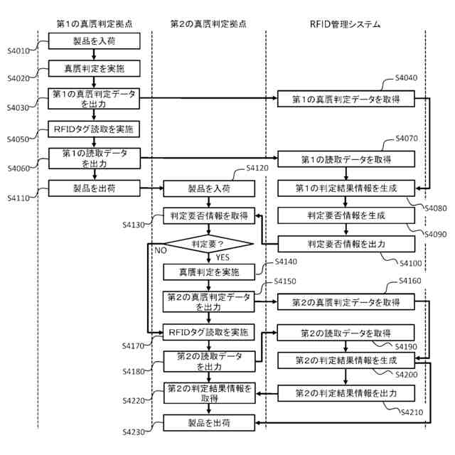 第1実施形態のRFID管理システムにおいて、読取要否情報を真贋判定拠点の端末に出力する読取要否情報出力部を更に備えてよい。読取データ取得部は、製品のうち、読取要否情報がRFIDタグの読み取りが必要であることを示す製品の読取データを取得してよい。