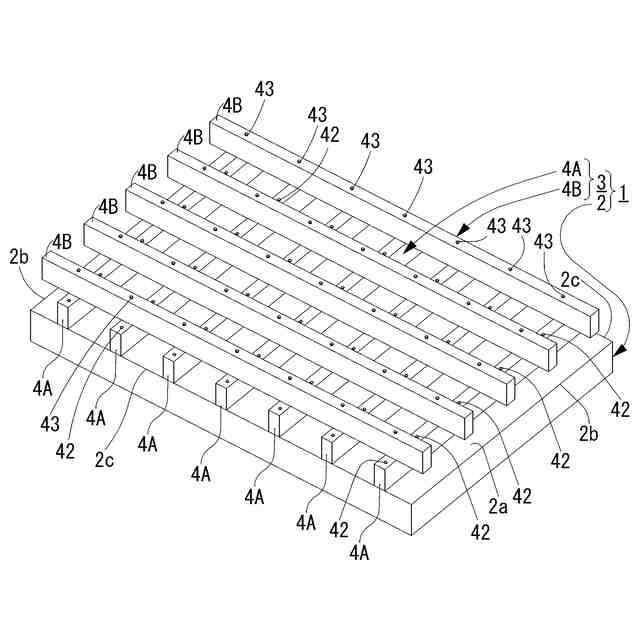 当該木質板2は、CLT(Cross Laminated Timber(直交集成板))、又は、集成材、又は、LVL(Laminated Veneer Lumber(単層積層材))、又は、合板、又は、無垢材等により形成された木製の面板を用いればよい。