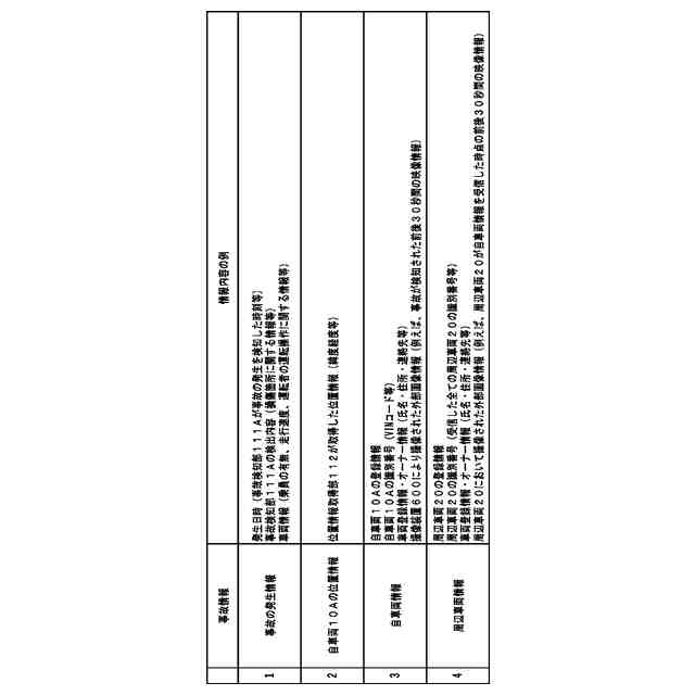 形態2;本発明の1またはそれ以上の実施形態は、撮像装置が撮像した自車両の外部画像情報に基づいて、車両損傷を伴う事故の発生を検知する事故検知部と、前記事故の発生検知時の前記自車両の位置情報を衛星測位システムから発せられた電波を受信して取得する位置情報取得部と、前記自車両に関する登録情報を含む自車両情報を記憶する記憶部と、前記自車両の周辺車両に前記自車両情報を送信し、前記周辺車両から周辺車両情報を受信する通信部と、前記事故検知部において、前記車両損傷を伴う事故の発生が検知されたときに、前記自車両が加害車両または被害車両のいずれかであるかを判定する判定部と、前記事故検知部と、前記位置情報取得部と、前記通信部と、前記判定部と、の処理を制御する制御部と、を含み、前記制御部は、前記事故検知部において、前記事故の発生を検知すると、前記判定部において、前記自車両が前記加害車両であると判定された場合には、前記通信部を介して、前記周辺車両に前記自車両情報を送信させ、前記判定部において、前記自車両が前記被害車両であると判定された場合には、前記通信部を介して、前記周辺車両から前記周辺車両情報を受信させ、前記事故の発生情報と、前記自車両の位置情報と、前記判定部の判定結果に関する情報と、前記自車両情報と、前記周辺車両情報とを紐づけた事故情報を生成し、前記通信部を介して、前記事故情報をサーバ装置に提供することを特徴とする車両事故情報収集装置を提案している。
