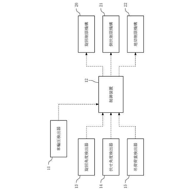 このため、従来にあっては、前述の如き条件下で発生する最大車輪圧が前記基礎の許容車輪圧以下に収まるように設計する一方、最大車輪圧が発生する条件下でのジブの伏せ角度を伏せ限界として定め、車輪圧がジブの向き(旋回角度)により異なるにも関わらず、旋回角度は度外視して前記伏せ限界を超えないようにジブの伏せ角度のみを制御し、作業時における軌道走行式クレーンの安定度を確保するようにしていた。