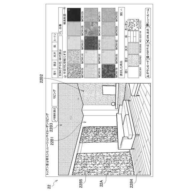 従来、インテリア空間の画像内の複数のインテリア用品(例えば、壁紙や天井材や床材等)の各々のデザインを選択するためのデザイン選択画面を表示し、デザイン選択画面においてユーザによって選択されたインテリア用品のデザインを含むインテリア空間の画像を表示する装置が知られている(例えば、非特許文献1参照)。