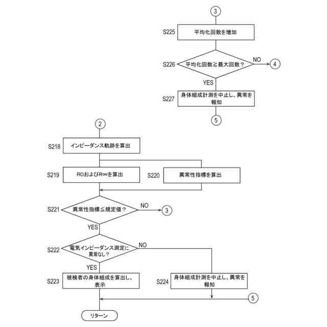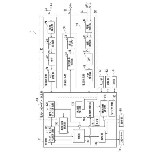 しかし、被検者の体格(顕著に太っている場合や、過度に小柄な場合等)、体動、腕と脇との接触の有無、両足の太もも同士の接触の有無、被検者に対する補液等の投与などの要因により、生体電気インピーダンス(以下、単に「電気インピーダンス」ともいう)の安定な計測が困難な場合や、生体電気インピーダンスの測定値が変化する可能性がある。その結果、被検者の身体組成の計測結果がばらつく可能性がある。