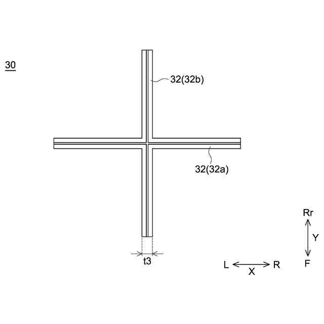 前記下方フレームは、前記外枠及び/又は前記下方リブから上方に向かって突出する3本以上の支柱を備えており、