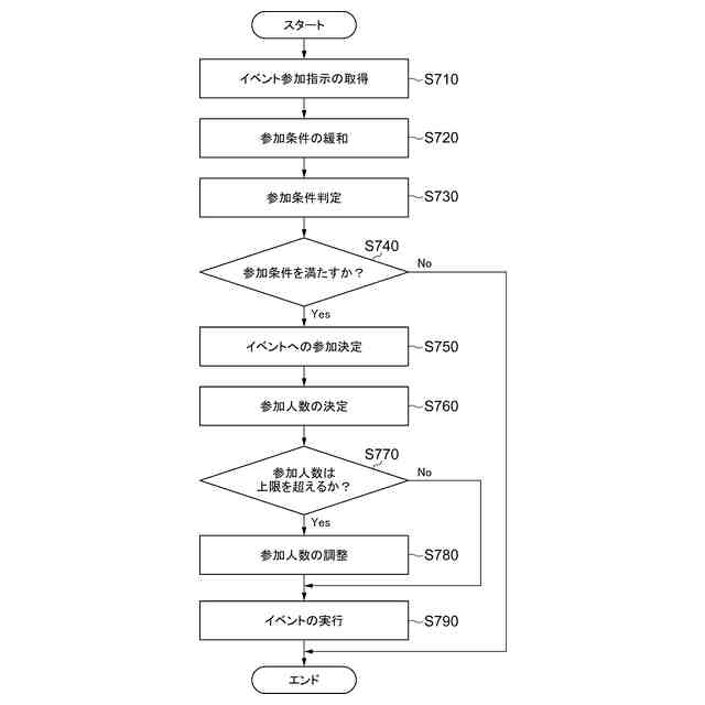 【解決手段】コンピュータを、参加条件を満たすユーザが端末を介して参加可能なイベントの処理を実行するイベント実行部と、前記参加条件の少なくとも一部を満たさない第1ユーザを、前記第1ユーザと予め定められた関係を結んでいる第2ユーザが前記イベントに参加することを参加条件として、前記イベントへ参加させる参加決定部として機能させるプログラムを提供する。上記のプログラムは、前記コンピュータを、複数のユーザにより結成されるグループを管理するグループ管理部として機能させ、前記参加決定部は、前記第1ユーザが前記第2ユーザと同一の前記グループに属する場合に、前記第2ユーザが前記第1ユーザと前記予め定められた関係を結んでいると判定してよい。