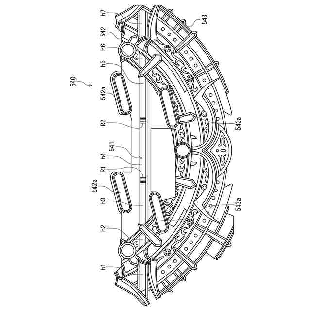 一対の可動部材520,530を取り外した状態の可動体ユニット500の正面図である。