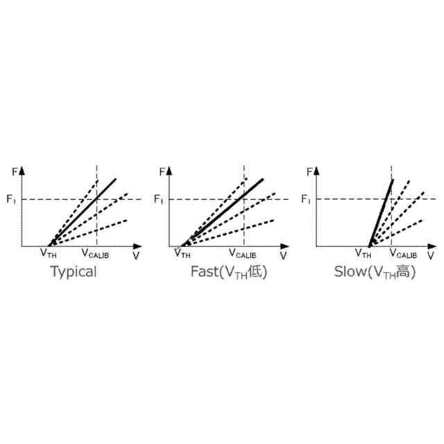 VCOのキャリブレーションを実行する場合、VCOに含まれるトランジスタのしきい値電圧のばらつきに影響されて、キャリブレーションの結果において複数のVCOの間でばらつきが生じ、VCOの特性にもバラつきが生じることがある。このようなバラつきを小さくすることが望まれる。