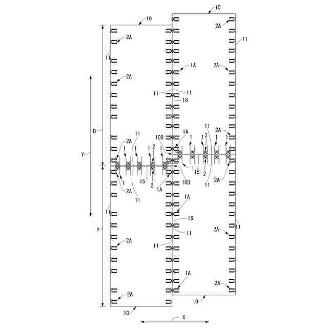 即ち、実施形態1の床版10としては、橋梁の橋軸方向Xに沿って隣り合う床版と接続するための第1の床版継手装置として床版継手装置1Aを用い、かつ、橋梁の橋軸直角方向Yに沿って隣り合う床版と接続するための第2の床版継手装置として床版継手装置1を用いるようにした床版10でもよいし、あるいは、第1の床版継手装置として床版継手装置1を用い、かつ、第2の床版継手装置として床版継手装置1Aを用いるようにした床版10でもよい。