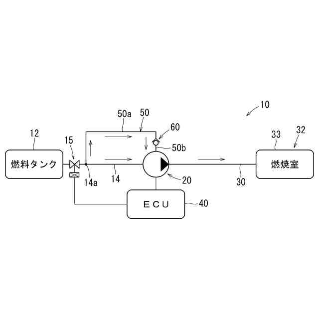 第2の手段によると、逆止弁により上流側バイパスラインの逆流を阻止することができる。これにより、燃料ポンプの出力低下を抑制することができる。