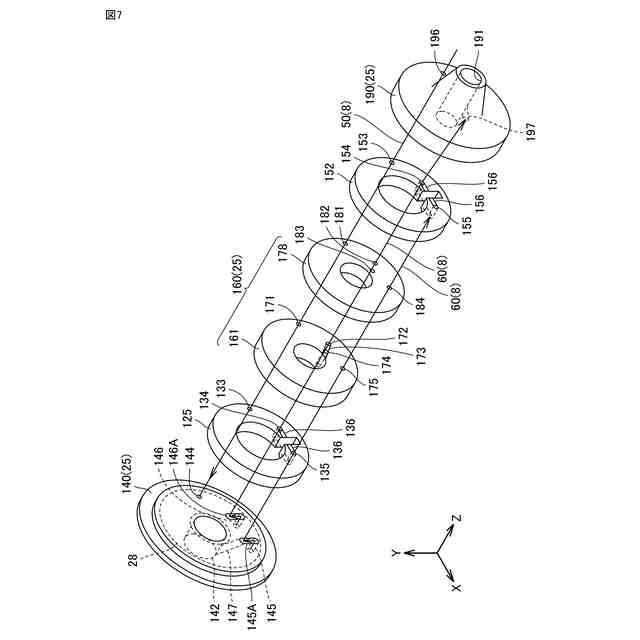本開示の実施の形態1に係るローリングピストン型電動圧縮機における潤滑油供給経路を示す分解斜視図である。