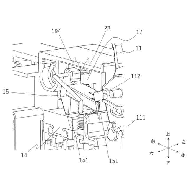 また、電路に過電流が流れた際に可動接点を固定接点から引き外す引き外し動作を行うことが可能な引き外し装置を備え、リンク機構本体部は引き外し装置が引き外し動作を行った場合に回動可能であり、リンク機構本体部に接続されるリンク部品の移動によりスイッチ切替部材を移動させることが可能な構成とすることが好ましい。
