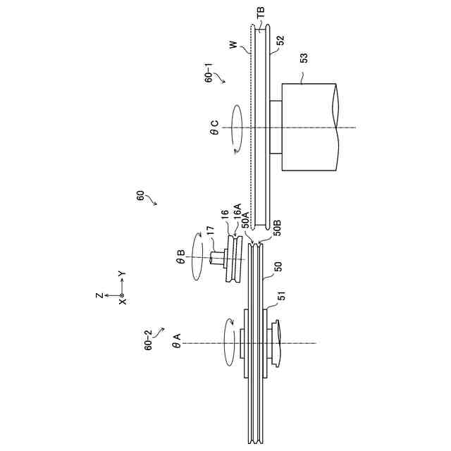 本開示の第3の面取り装置は、第2の面取り装置において、前記工具は、厚みが前記溝の幅より小さくされ、周縁に砥粒層が形成された金属ブレードである、面取り装置である。