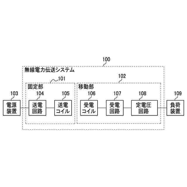 図1は、第1の実施形態に係る無線電力伝送システム100の構成例を示す。無線電力伝送システム100は、固定部101と、移動部102を有する。