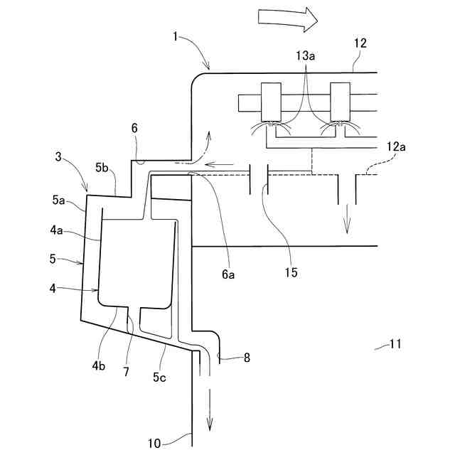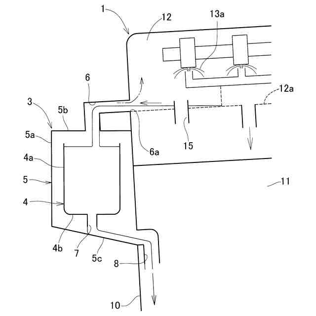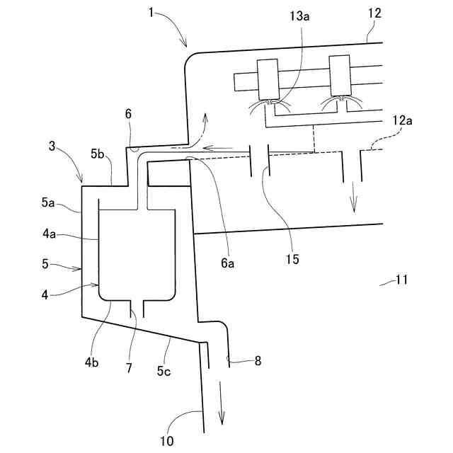 また、特許文献3に記載のオイルパンセパレータでは、副室から主室へ流出するオイルの量の分だけオイルパンに戻ることとなり、オイルパンに戻るオイル量を抑制することができない。